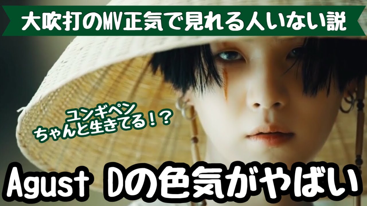王様っぽいユンギとボスみたいなユンギダブルで見れるなんて幸せっっっって思いでいつもMV見てます笑目隠しして首振るところとかカッコよすぎてリピ止まらないし目の傷何!?余計にカッコよくさせてる…もはや国宝級以上である。 追記 黒髪ユンギ好きすぎる。肌が白いからめっちゃ映えるしとりまかっこいい(語彙力)