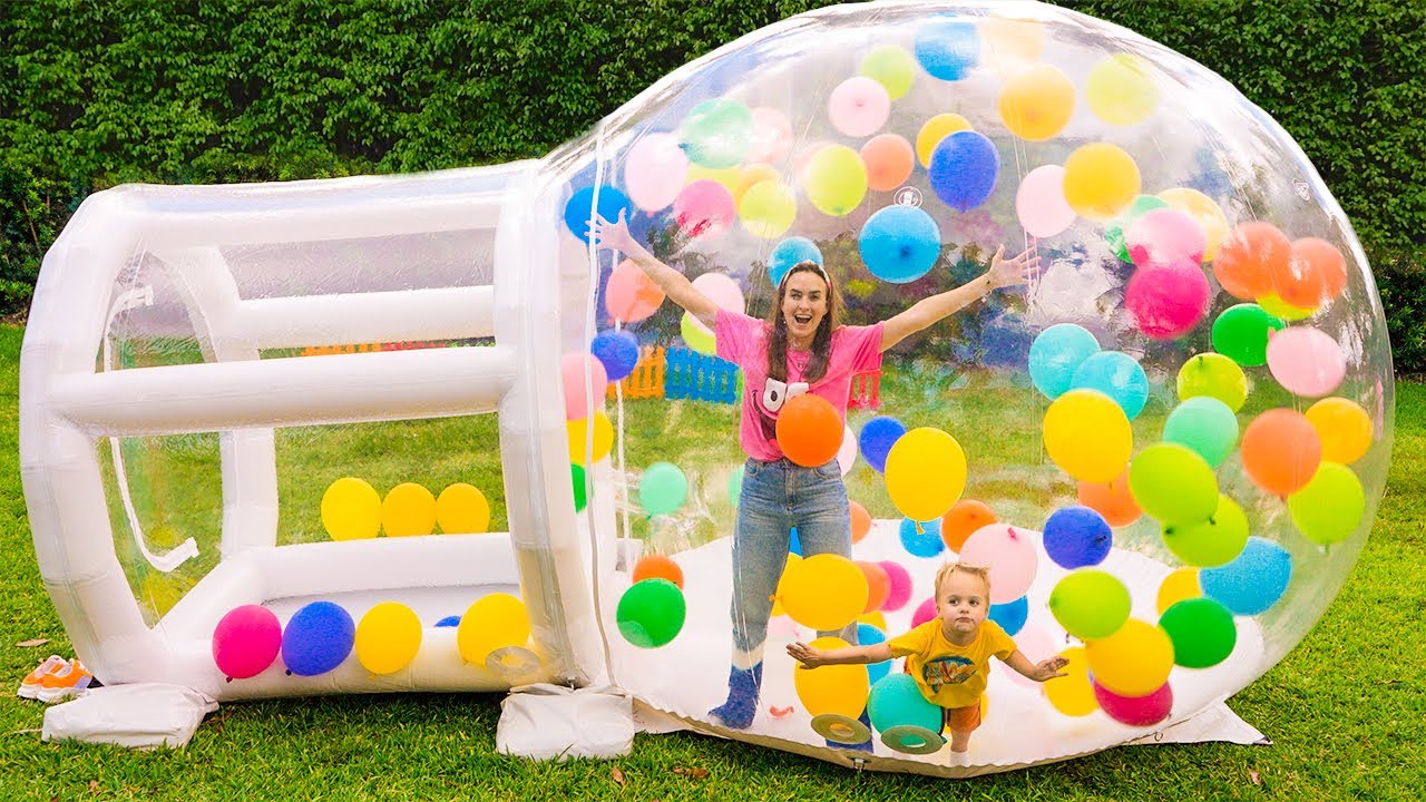 00:00 Chris and Mom play with a huge inflatable ball