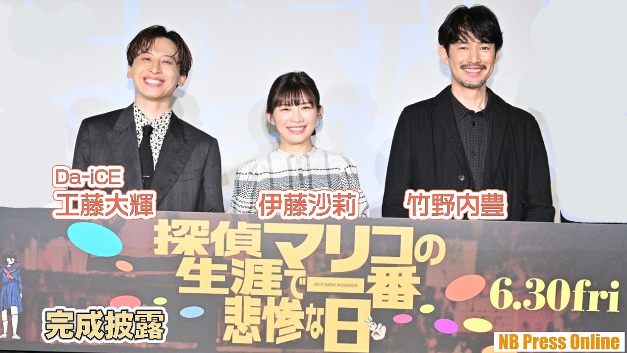 2023年5月31日、テアトル新宿にて、映画『探偵マリコの生涯で一番悲惨な日』完成披露舞台挨拶が行われ、伊藤沙莉、竹野内豊、内田英治監督、片山慎三監督、そして主題歌を歌った工藤大輝(Da-iCE)が登壇。