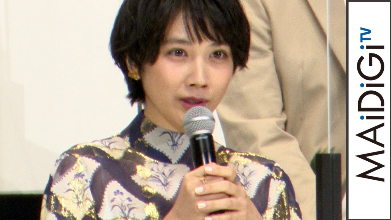 女優の松本穂香さんが9月17日、東京都内で行われた主演映画「みをつくし料理帖」(角川春樹監督、10月16日公開)の完成披露舞台あいさつに、奈緒さんら共演者と、角川監督とともに登場した。