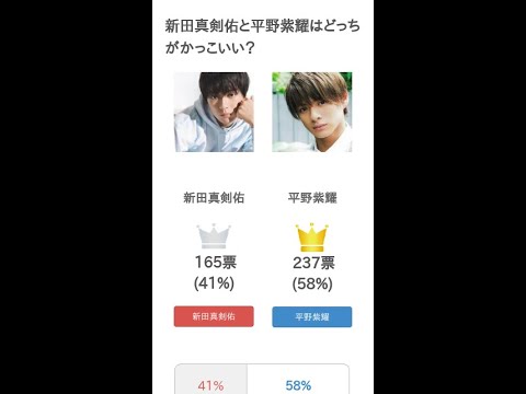 #新田真剣佑 と #平野紫耀 はどっちが #かっこいい?というテーマの投票結果です。