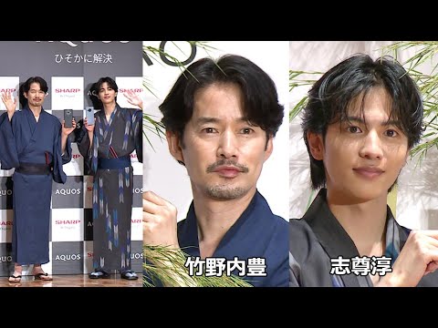 竹野内豊と志尊淳が、SHARPスマートフォン「AQUOS」の新CM完成披露イベントに出席した。