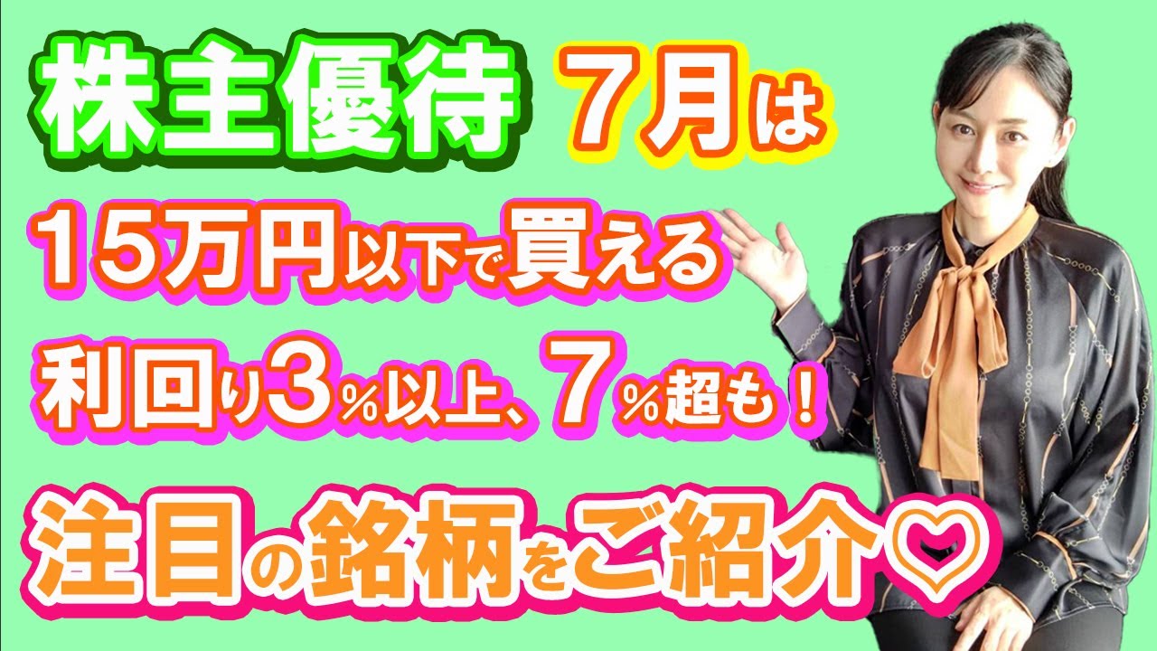 今回は特に、優待品だけではなく、配当金もあって、その中でも必要投資金額が15万円以下で買えて、利回り3%以上の銘柄ををピックアップしてご紹介しています。