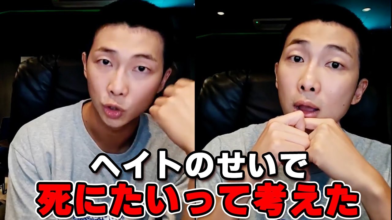 ヘイトのせいで死にたい気持ちにもなったなんて、胸が痛みますね😢ナムジュンの言う通り、ナムが愛する人、ナムを愛する人とだけ一緒にいてくれたらそれでいいと思います。嫌いな人にまで心を寄せる必要はないですから。ナムを嫌いな人がいたとして、世界中にどれだけ貴方を愛する人がいるか…何倍、なんてものじゃないです。嫌な言葉は受け取らず、どうか楽な気持ちで毎日を過ごせるように願います。