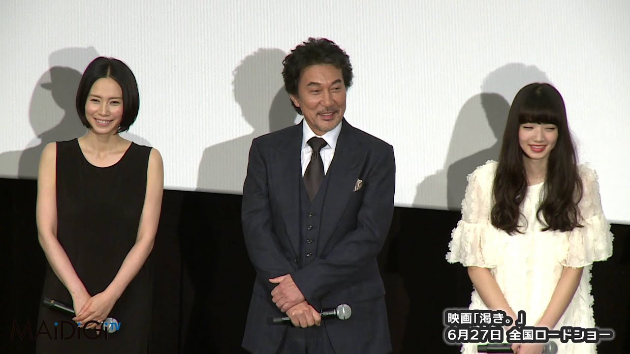 映画は、深町秋生さんの小説「果てしなき渇き」が原作。元刑事の藤島昭和が、失踪した娘・加奈子の行方を追う姿を描いている。舞台あいさつには藤島を演じた役所さん、橋本愛さん、中島監督も出席した。映画は公開中。