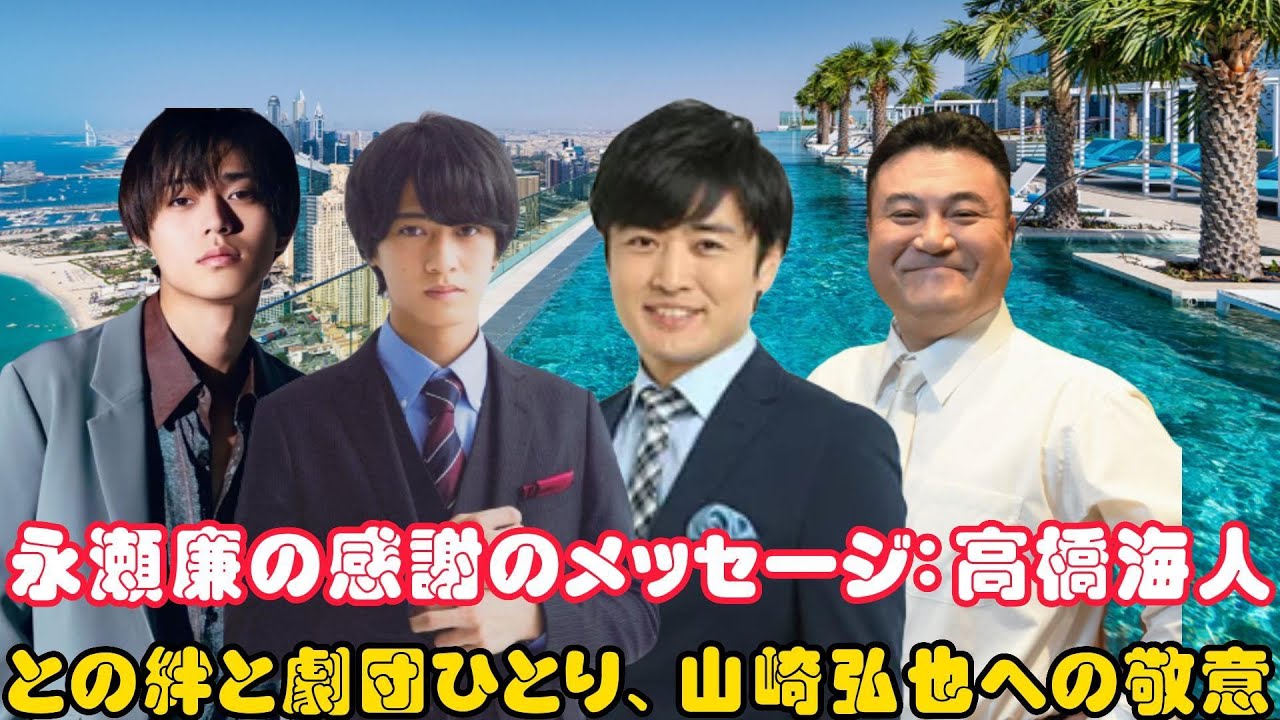 永瀬廉が心から感謝を伝える貴重な瞬間をお届けします。彼は高橋海人に対して感謝の気持ちを述べ、彼を励まし、支え続けてくれたことに心からの感謝を伝えます。さらに、劇団ひとりと山崎弘也にも感謝の言葉を捧げ、彼らが提供してくれた助言やサポートについて語ります。
