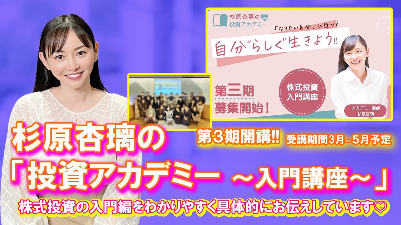 これまで1期、2期と開講してきました「杉原杏璃の投資アカデミー」ですが、この度第3期を開講することになりました!!