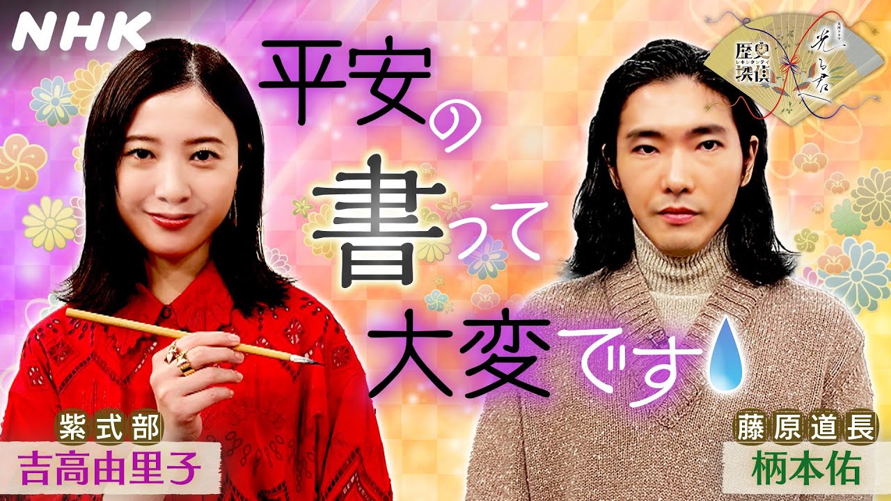 いよいよ平安時代が舞台の大河ドラマ『光る君へ』が始まりました!歴史探偵の事務所での主演まひろ(紫式部)役 吉高由里子さんと藤原道長役 柄本佑さんの平安トークをお送りします。おふたりが取り組む、しかもいちばん大変かもしれない “俳優の書く字が演じる人物の書としてそのまま画面に映る” ことについて。