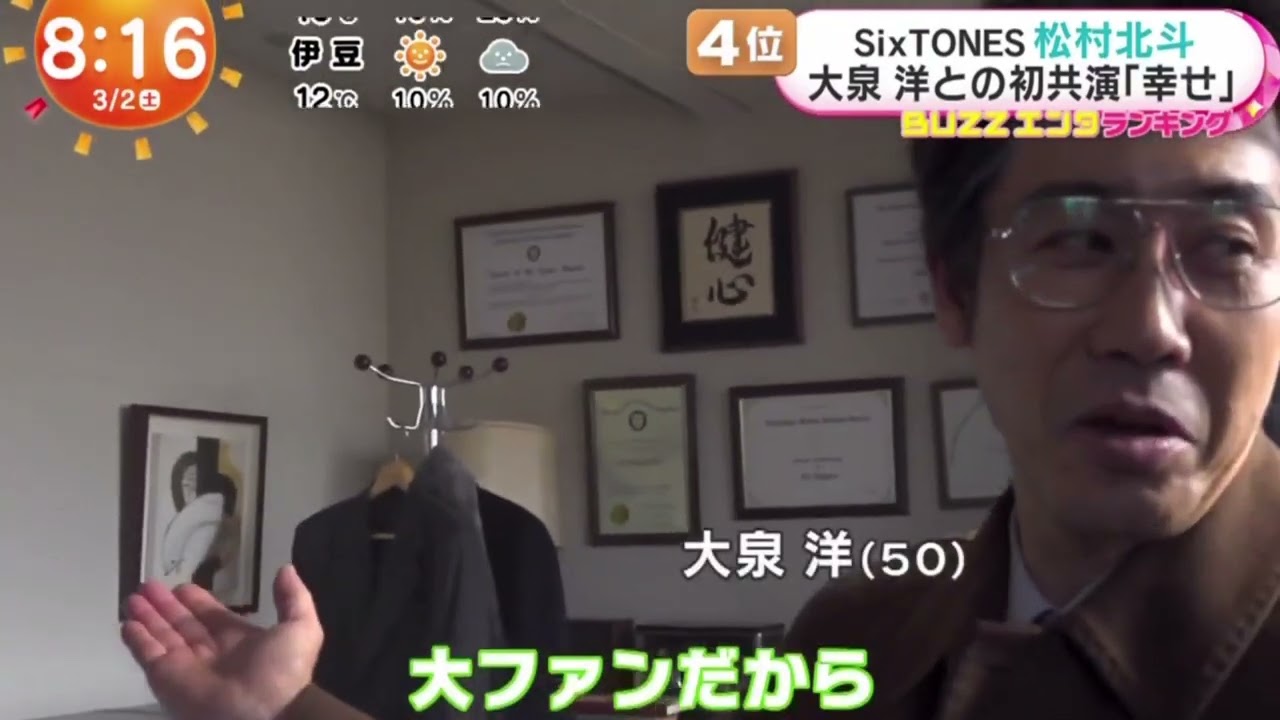 SixTONES 松村北斗 大泉洋との初共演「幸せ」 | 2024年3月2日