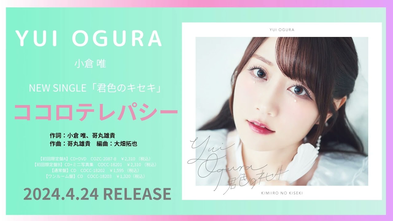 小倉 唯 Newシングル「君色のキセキ」(TVアニメ「ワンルーム、日当たり普通、天使つき。」オープニングテーマ)、2024/4/24発売!!