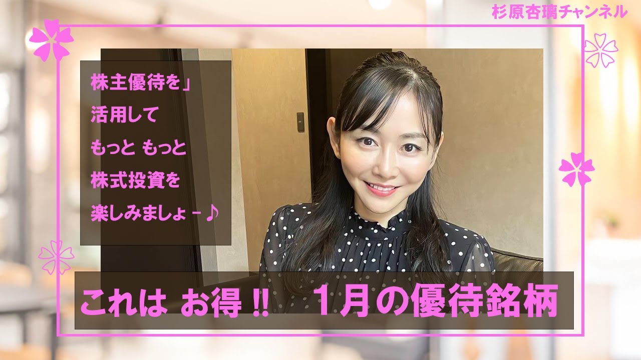 今回は、株主優待を活用して、もっともっと株式投資を楽しんで頂けるよう、私が注目している1月が権利確定日の株式優待銘柄についてお話しています。株式投資は株価の上下による差益だけでなく、株主として受けられる優待でも楽しむことができるものなので、様々な角度からご紹介できればと思っていますので、ご興味のある方は、是非 チャンネル登録をお願いします!