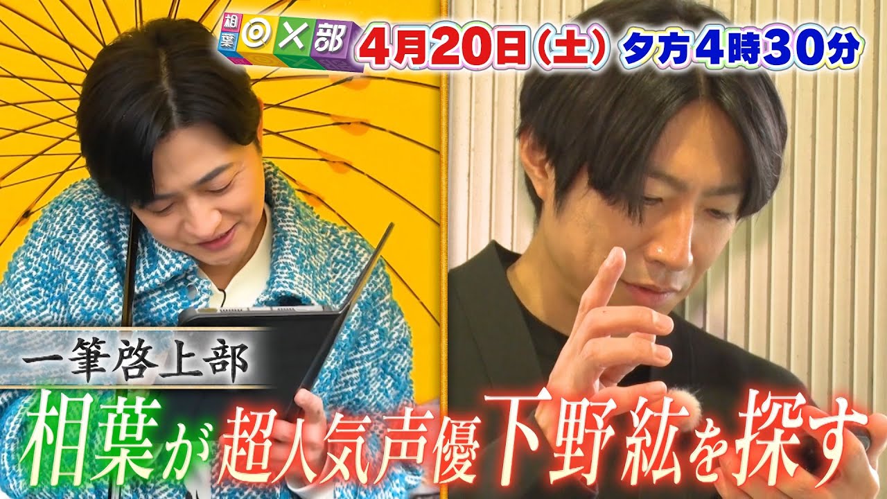 「木7◎×部」が「相葉◎×部」にリニューアル!!実は親友である相葉雅紀と声優・下野紘。13文字の短い手紙だけをたよりに、相葉が下野の待つ思い出の地を大捜索中!さらなるヒントで2名は無事に出会えるのか!?