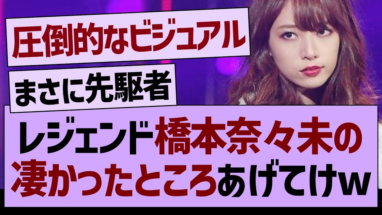 絶対に媚びないクールビューティでバカ売れした女性タレントは女優さんにはたくさんいたけど、アイドルでは橋本が初めてなんじゃないかね。(中森明菜は売れたけど橋本ほど美人じゃなかったし、クズ男につかまって中途半端に終わってしまった)娯楽の王様が映画だった時代、橋本レベルの超絶美人には役者をやらせて長く稼げる女優を作ってきた。橋本も一瞬月9ドラマに押し込まれたけど媚びることなく大根っぷりを発揮してその伝統をぶち壊したwとはいえ媚びなきゃならない表舞台が嫌になってアイドル卒業後、裏方スタッフに転身した。オタク視点を離れて客観的に言うとななみんの足跡はこんな感じ。強いて「凄い」というならアイドルという仕事を全うしながら「自分を貫いた」ところ。つまり、伝説・偉業を作るのはまだまだこれから。裏方としても名前を残してほしい。がんばって。