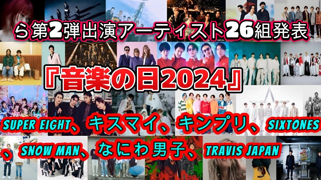『音楽の日2024』SUPER EIGHT、キスマイ、キンプリ、SixTONES、Snow Man、なにわ男子、Travis Japan 第2ラウンドで印象的な26人のアーティストを発表する。