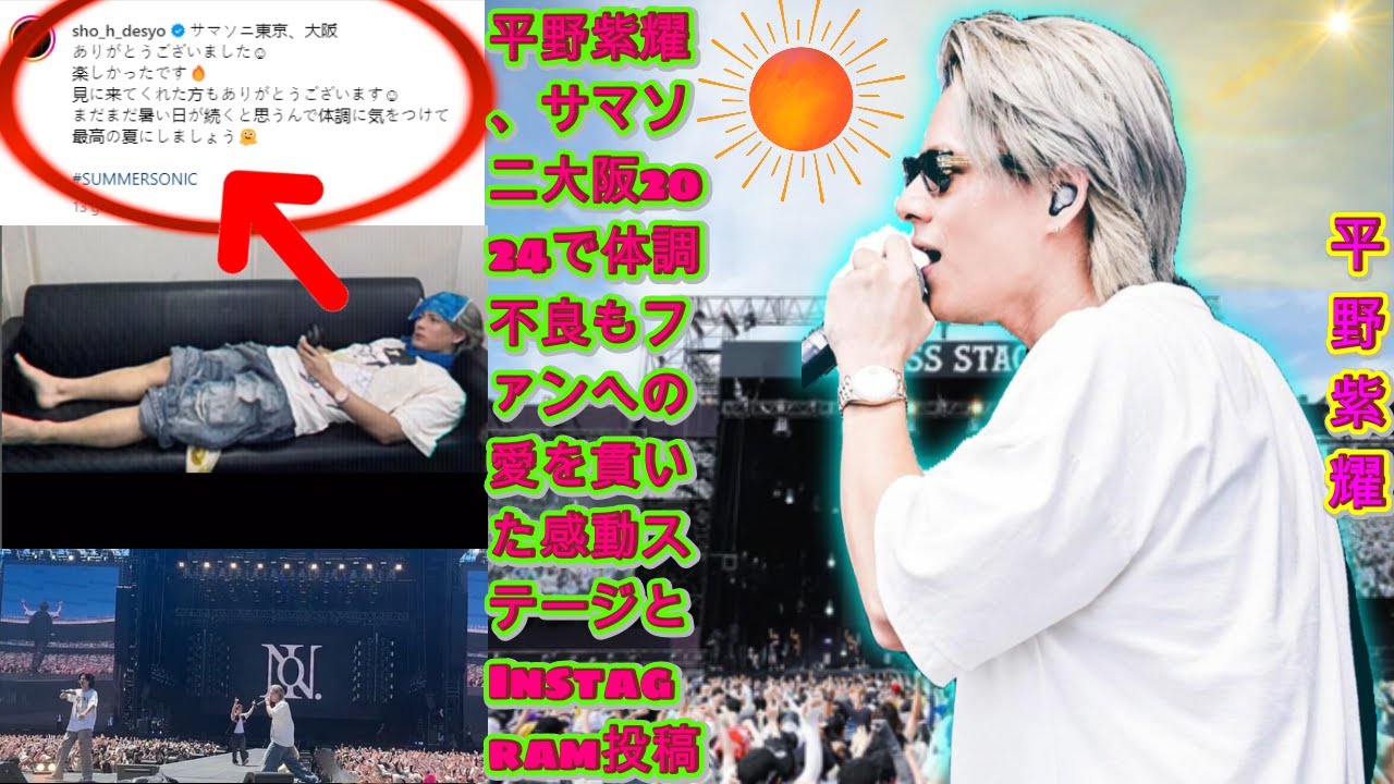 #平野紫耀 #サマーソニック #サマソニ大阪2024 #体調不良 #感動ステージ #ファンへの愛 #Instagram投稿 #熱中症 #感謝の気持ち #音楽イベント #ライブパフォーマンス #アーティストの姿勢