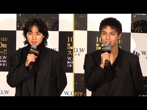 映画「ゴールデンカムイ」の続編となるドラマシリーズ「連続ドラマW ゴールデンカムイ -北海道刺青囚人争奪編-」の完成披露試写会が開かれ、主演の山﨑賢人、中川大志らが出席した。鯉登少尉役でドラマ版から出演する中川は、「すごく反響があって、鯉登というキャラクターがどれだけ愛されているかが実感できた。ドキドキしています」と話した。