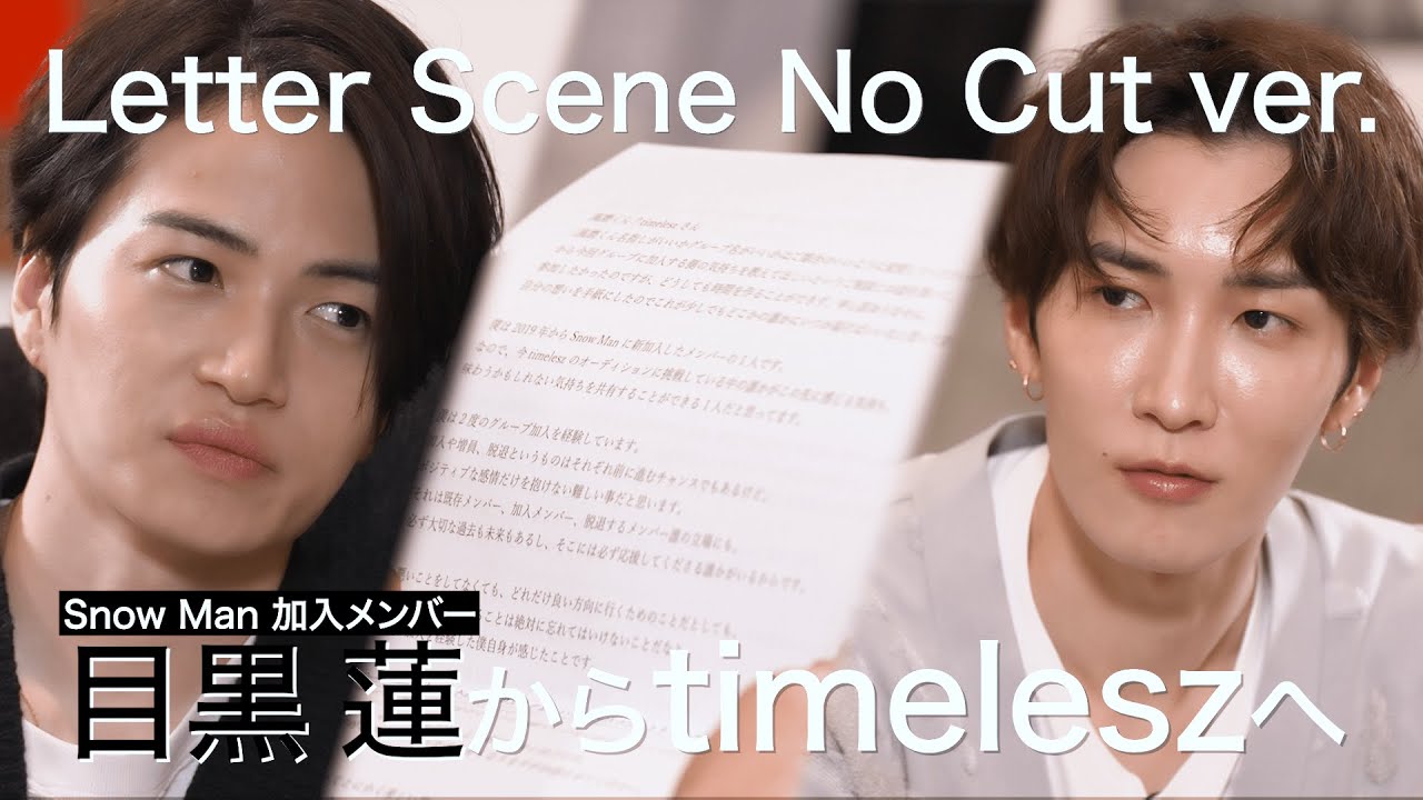 special episode -覚悟- 36名に絞られた候補生たちとの3次審査を前に、菊池風磨とSnow Man 渡辺翔太による対談が実現!本作では、その対談中に披露された目黒蓮からの手紙 NO CUT ver.を公開!グループに途中加入した目黒が抱えていた想いとはー。 #ネトフリでタイプロ #timelesz_project #オーディション Tags:Netflixsnow mantimelesztimelesz projectオーディションタイプロ佐藤勝利松島聡渡辺翔太目黒蓮菊池風磨 48 comments これは必須項目にして欲しいくらい候補生は見て欲しいけど、これを自ら見にくるくらいの人じゃないとtimeleszには相応しくないと思う スノ担じゃないからプロセスは全然分からないけど、目黒くんの消えない、消えちゃいけない想いに涙溢れてきたし華やかな笑顔の裏でたくさん葛藤、努力してるのを聞いて少し見方が変わる。 いい手紙やなぁ… 目黒くんは強いってよく言われるけど 傷ついたから人に優しく出来るんだろうな。内面は負けん気は強くても1番心が繊細だと思う。 目黒蓮のSnowManへの想いがすごい😂 Netflixで視聴しましたが、手紙ノーカット版もYouTubeで公開して貰った事で、より真っ直ぐに言葉がその言葉通りに理解出来た気がします。プロジェクトの成功と、これから先の両グループの暖かい未来を願っています。 有料のNetflixで配信しているものを即公式YouTubeへ掲載するのは本来難しいはず。歪曲して伝わることへの強い懸念を感じ、timelesz陣営さんの誠実さがSnow Manのファンとして有り難いです。 この動画あげる前に36人はどこが良くて通過したのか教えて欲しいです。3次審査から応援しろってことですか?何を見て応援したらいいんですか?ファンの為って言うけど何が良くてこの人たちは通過したのか知らないと応援も出来ません。あと候補生たちはSNS再開してますよね?それもファンには教えてくれないんですか?何で再開したのってコメントしたらSNSはやってもいいって言われてって言うけどそんなことこっちは何も知らないしって思います。 わからないだけで、みんないろんな思い、考えてるんだなと思いました。 元々あったグループに新しく入るんだから、なかなか大変ですよ。それでもこうやって沢山応募してくるんだから、みんなすごいなあ。 めめらしいね🖤ノーカット版ありがとうございます こんなスラスラ読める風磨凄くないか??? 素晴らしいしかない。 喜んでるの目黒担だけよね? 公の場で選択を応援してくれる2人がいること、本当に心強いのではないかなと思います とても真っ直ぐで素直な気持ちを綴ってくれて、本当に本当にありがとうございます 伝えてくれてありがとうございます。応援いたします。 蓮くんの素直な言葉や気持ちは、いつもどんな事でも胸に刺さるから本当に蓮くんのファンでいれて幸せ🥹6人時代からの阿部担であり、宇宙Six(加入する数ヶ月前)からの目黒担であり、加入後のラウール担である私からしたら6人時代のファンと加入メンバーのファンの人が色々揉めてるのを見るだけで悲しかったなぁ🥺この手紙を聞いてその時を思い出して、泣きそうになった😭ノーカット版を公式で載せてくださりありがとうございます😊 めめのおもいに色んな場面で当てはまるなぁと聞き入りました。新規メンバーとなるであろう候補生さん達にブッ刺さってくれ❣️スト担ですが、タイムレスもスノーマンも応援させていただいてます😊 後から加入するということの思いや背負っていることを聞けて、本当に貴重だと思いました。こんな覚悟を持っているんだなと。候補生の方に見て欲しいです。目黒くんの人柄、物事の捉え方、気遣いのある言葉に感動しました。 朝早く起きてNetflixを観て泣いて今、YouTubeのノーカットの文面を聞いてまたポロポロ目黒蓮さんの真っ直ぐな想い、しょっぴーの真剣な眼差し、風磨くんのよどみない読み、全てが上手く回っていく気がします 風磨くん、全文読み上げてくれてありがとうございます。 timelesz project始まってからtimeleszのFCに入った者ですが、Snow Manのファンとして2019年〜デビューまでに感じたことを活かして1ファンとして盛り上げていきたいと思っています💪 3人を信じているので、彼らが選んだメンバーを歓迎します🙋♀️ 以前、ラウールがパリコレに出た時、自己紹介をする際に必ず、「Snow Manのラウールです」と言ってる姿に感動しました😂❤やっぱり目黒くんのお手紙の通り、謙虚さ、尊敬…等を忘れていないからですよね!最初からのSnow Manのファンの方々がいつも一緒なんだなぁ~❤と思いました(笑)6人時代を知らなかった私が言うのは失礼ですけど…😅すいません🙏今頃ですが、6人時代の動画を時々拝見しています😊Snow Manって…凄い人達ですね🎉❤今では9人共大好き😆💕 これをYouTubeで無料で公開してくださったtimelessさんに感謝します🙇 目黒くんの熱い気持ちに感激し号泣です😭 風磨くん、腕時計似合ってるー 本当にめめの全文をあげてくれてありがとう。人に思いを伝える事の難しさを一番分かってるめめだ