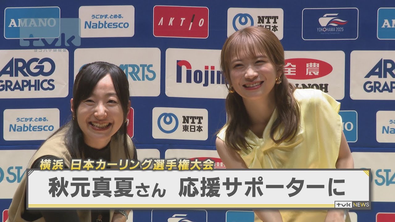 首都圏では初開催となる国内最高峰のカーリング大会が来年、横浜市で開かれます。その大会の公式応援サポーターにタレントの秋元真夏さんが就任しました。
