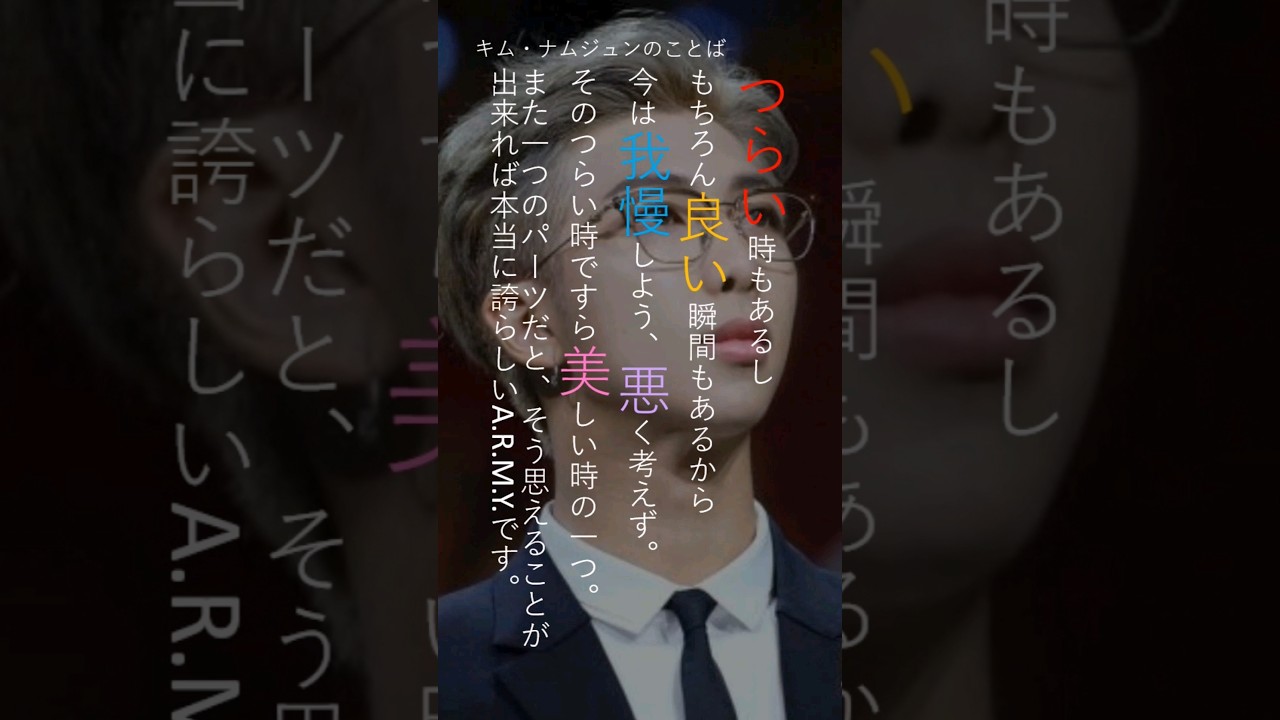 見た目じゃなく、美しく生きる。・・・ありがとう。 Tags:RM(ラップモンスター) 1 comment 今は死にたい気持ち無くなりましたがいつまた死にたい気持ちになるのかなて考えると怖いです😂 コメントを残すコメントを投稿するにはログインしてください。