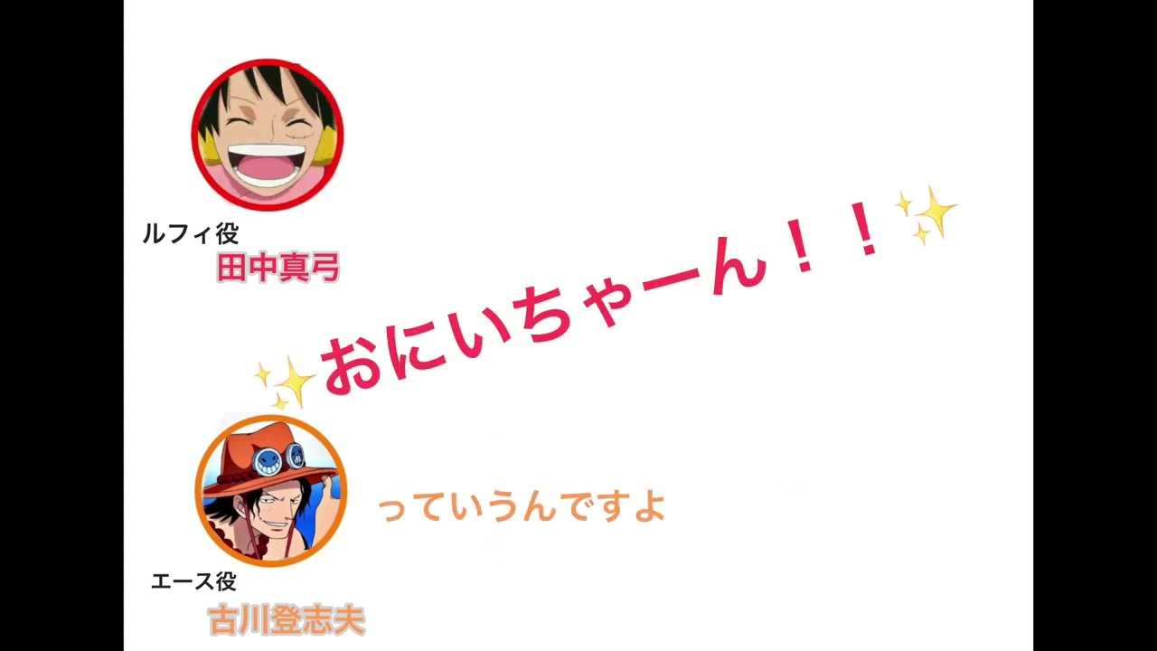 Tags:one pieceエースルフィワンピース古川登志夫田中真弓 9 comments 古川さん 子どもの頃から大好きな声優さんです😊 ワンピースで1番エースが好き。 古川さん、素敵な方ですよね。 「兄貴は心配なんだ」のこと大好き(*´ω`*) 古川さんの素の話し方って、エースでもピッコロでもなくあたるっぽいな〜 古川さんになら「出来の悪い弟を持つと、兄貴は心配なんだ。」とか言われたいですね。 古川登志夫さんの演技が大好きです心から尊敬する役者さんです サボ役の古谷さんからはどう呼ばれてるのかな。カイさんとか。 田中真弓様は、本当に凄いですね。色々な声を演じなさられて。きりまるから埴輪から、ルフィからカラスの声から素晴らしい。流石は真弓ちゃん。 コメントを残すコメントを投稿するにはログインしてください。