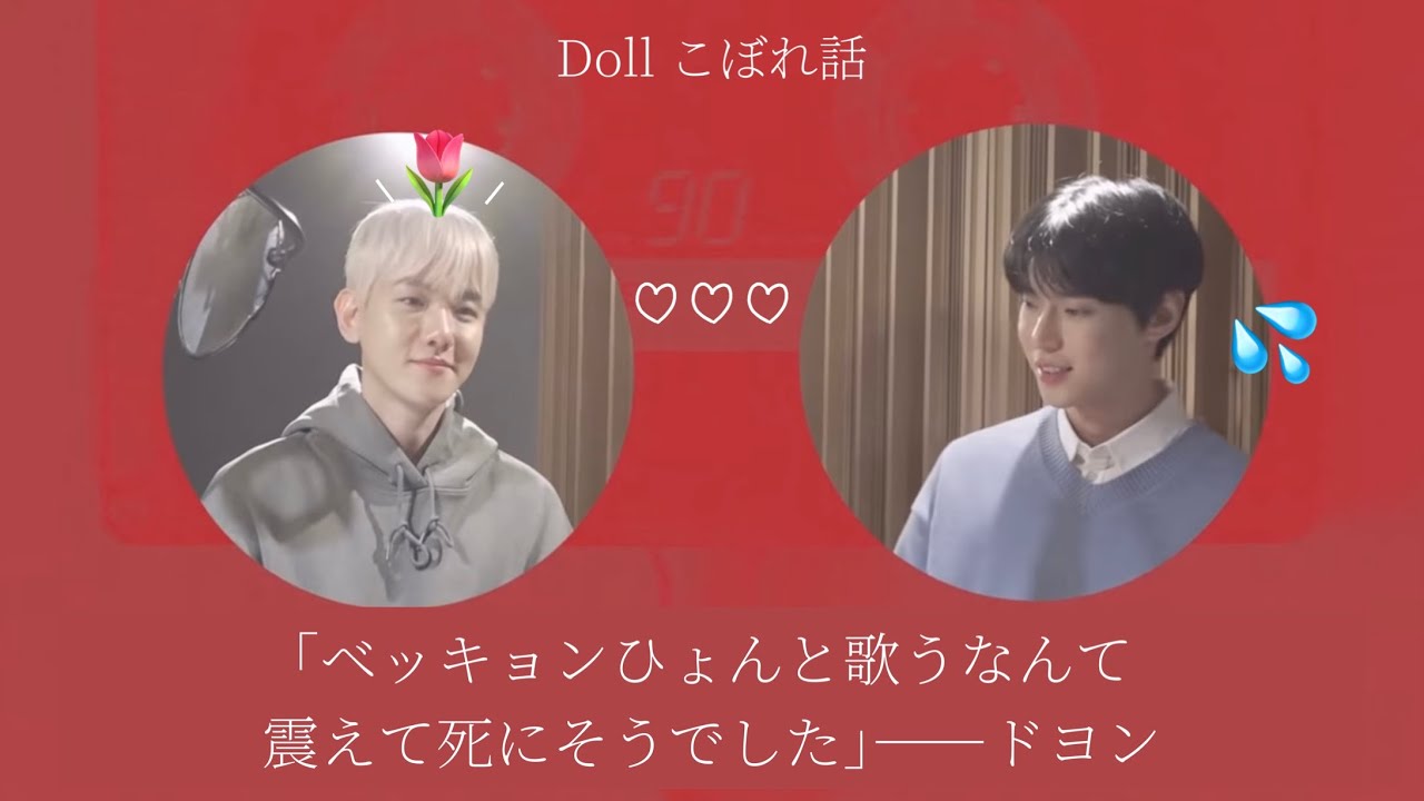 たじたじ?ドキドキ?頑張れドヨン! 誤訳等ありましたら申し訳ありません!! 〈補足〉 ベッキョンとドヨンがコラボした인형 (Doll)(人形)は、2001年に発表された曲で、SMの先輩であるH.O.Tのカンタさんが作詞作曲した楽曲です! 過去にはカンタさん、ウェンディ(RedVelvet)、スルギ(RedVelvet)の3人で披露したこともあります! ⬇️ベッキョンとドヨンがコラボしたDoll ⬇️カンタさん、ウェンディ、スルギが披露したDoll Tags:BAEKHYUNDollDoyoungEXONCTドヨンベクヒョン(BAEKHYUN)ベッキョン日本語字幕엔시티인형 5 comments この時って、ベッキョンとNCTテヨンのイチャイチャでドヨンが嫉妬してた時では? 0:46🐶「ドヨン何でそんなに恥ずかしがってるの」 BTOBミニョク&ソンジェがカバーしてて何回も聴いた大好きな曲。。この2人の歌声も大好きだから嬉しい! ドヨンくんにもテヨンくんにも愛されるベッキョン✨弟思いのいい兄貴✨☺️ 인형처럼 생겼어🐶 コメントを残すコメントを投稿するにはログインしてください。