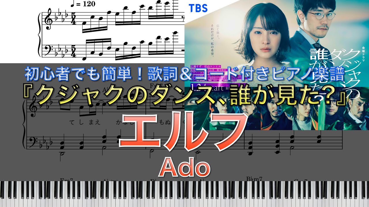#Ado 新曲「 #エルフ 」、金曜ドラマ『 #クジャクのダンス、誰が見た? 』主題歌を、初心者でも簡単に弾けるように歌詞とコード付きで #ピアノ #楽譜 を書きました。