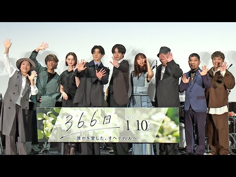 映画「366日」の公開前夜祭舞台あいさつが行われ、赤楚衛二、上白石萌歌らキャストと新城毅彦監督、主題歌「恋をして」を担当したHYが登場した。