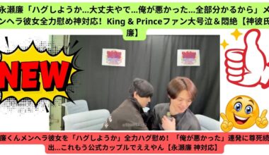 BBoys Read More 永瀬廉「ハグしようか…大丈夫やで…俺が悪かった…全部分かるから」メンヘラ彼女全力慰め神対応!King & Princeファン大号泣&悶絶【神彼氏廉】2026-03-09 永瀬廉「ハグしようか…大丈夫やで…俺…