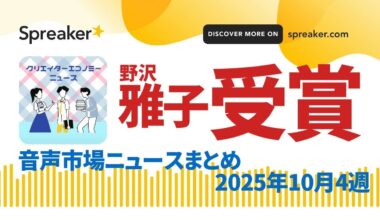 GGirls Read More 音声市場ニュースまとめ2025年10月4週~野沢雅子受賞、Audible10周年、福留光帆と兵庫県、松任谷由実がAI 他2025-10-26 【2025年10月26日配信】声優の…