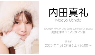 GGirls Read More 【11/29 20:00~】内田真礼『UCHIDA MAAYA LIVE 2025 SUMMER OF LOVE』発売記念オンラインサイン会2025-11-29 【対象商品】 2025年12月24日…