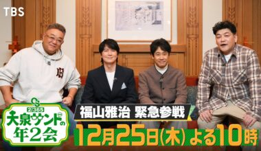 BBoys Read More 福山雅治参戦!帝国ホテル1泊300万円!三越貸し切り爆買い!!『大泉サンドの年2会』12/25(木)【TBS】2025-12-22 超多忙な大泉洋とサンドウィッチマンと…