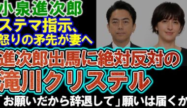 GGirls Read More 【小泉進次郎】総裁選出馬に絶対反対の滝川クリステル「おもてなしできない理由」胸中を明かす。ステマ指示の批判が妻に向けられる。2025-09-28 【小泉進次郎】総裁選出馬に絶対反対の…