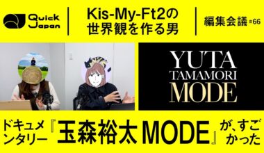 BBoys Read More 「8キロのジャケット」「安全ピンで装飾」キスマイ玉森裕太が作る衣装が魅せる世界観【Quick Japan編集会議#66】2026-01-06 <#66 ドキュメンタリー『玉森裕太…