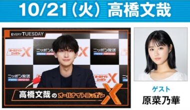 高橋文哉のオールナイトニッポンXクロス. 出演者 : 高橋文哉 2025.10.21 ゲスト: 原菜乃華