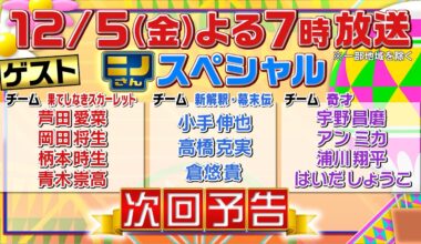 BBoys Read More 【ニノさん】12月5日(金)夜7時▼芦田愛菜&岡田将生VS作文ポーカー!宇野昌磨「きおえまけ」で何作る?▼柄本時生&RAMPAGE浦川が白熱!見るなぞなぞ4コマ漫画シアター▼肉食VS草食動物リレー競争2025-11-28 “「ニノさん」 12月5…